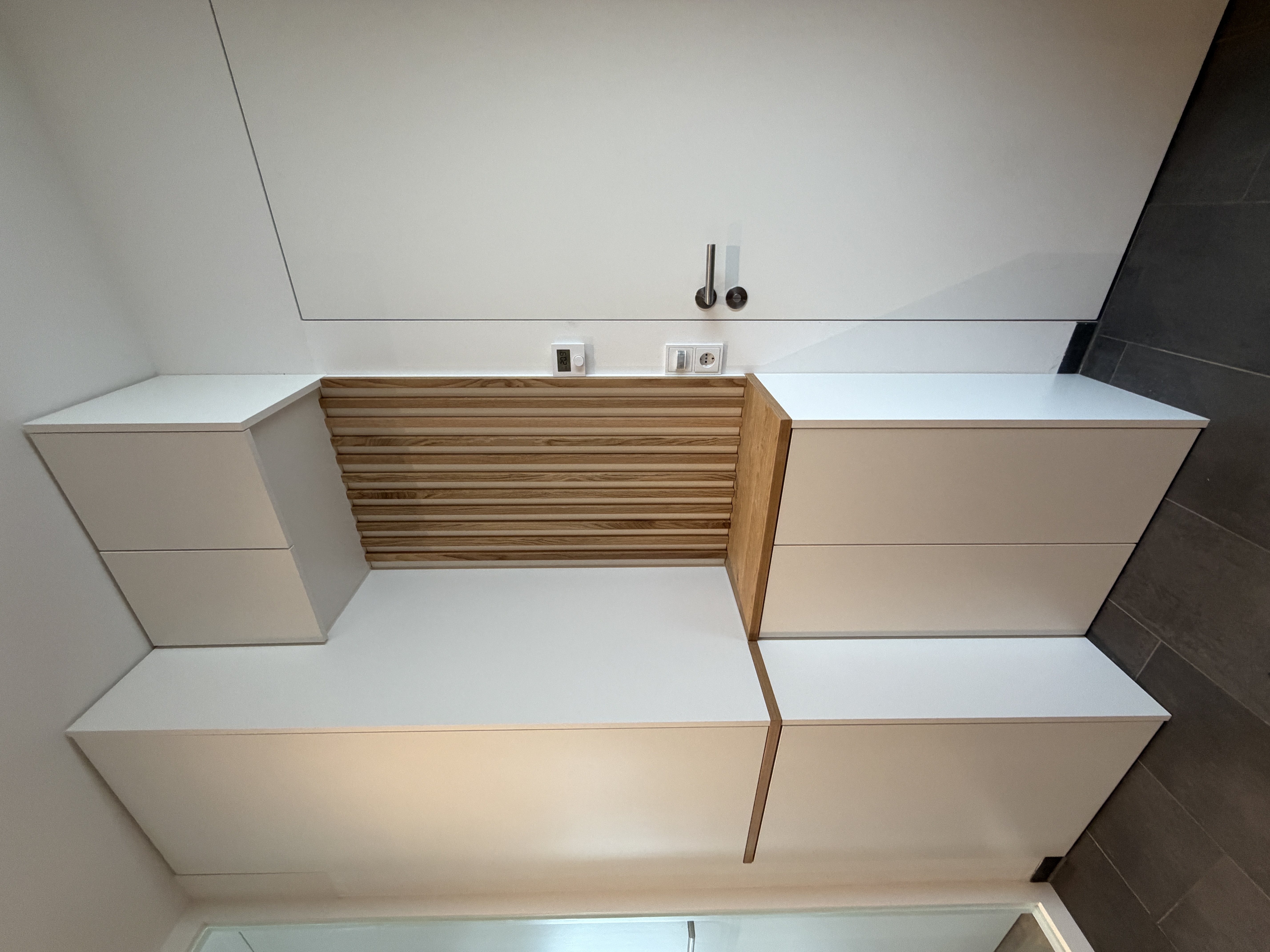 Eines der unterschätzten Möbel in der Planung. Oft mangelt es den Waschtischunterschränken nur an kleinen Details, welche viel Stauraum und Möglichkeiten kosten. Wir garantieren Ihnen den Unterschrank perfekt auf das Waschbecken anzupassen und ihre individuellen Wünsche umzusetzen. Schubläden aus Massivholz oder mit Alukern, am Siphon ausgenommen, zweigeteilt oder einzeln. Uneingeschränkte Nutzbarkeit ist bei uns oberste Priorität. Gerne zeigen wir Ihnen alle Möglichkeiten auf.